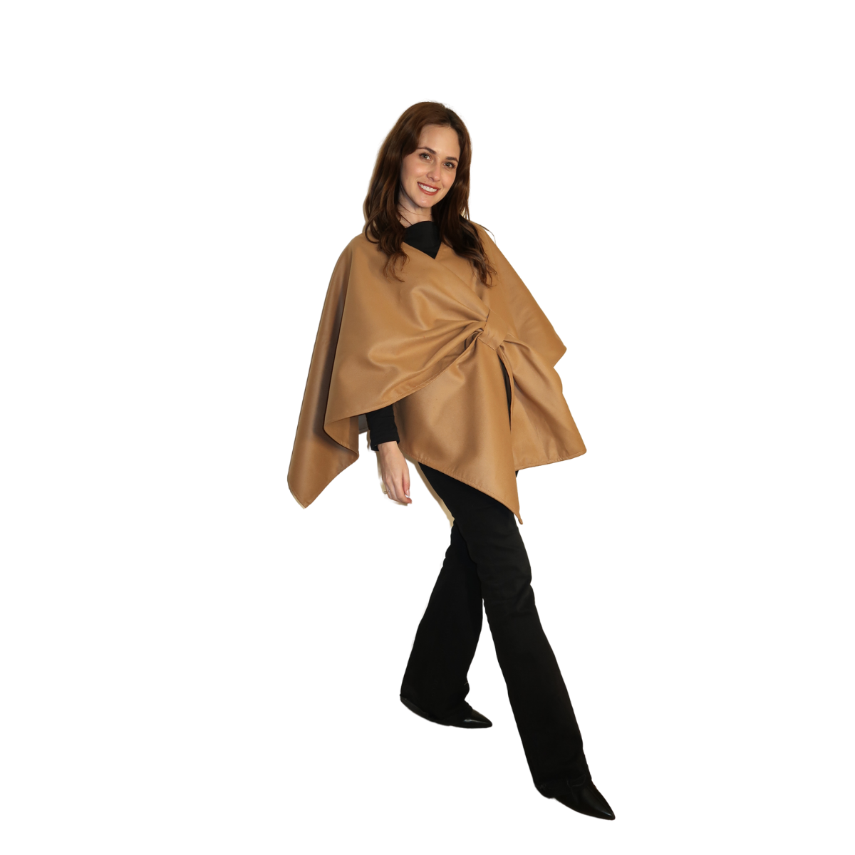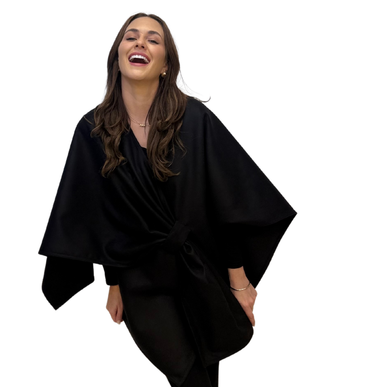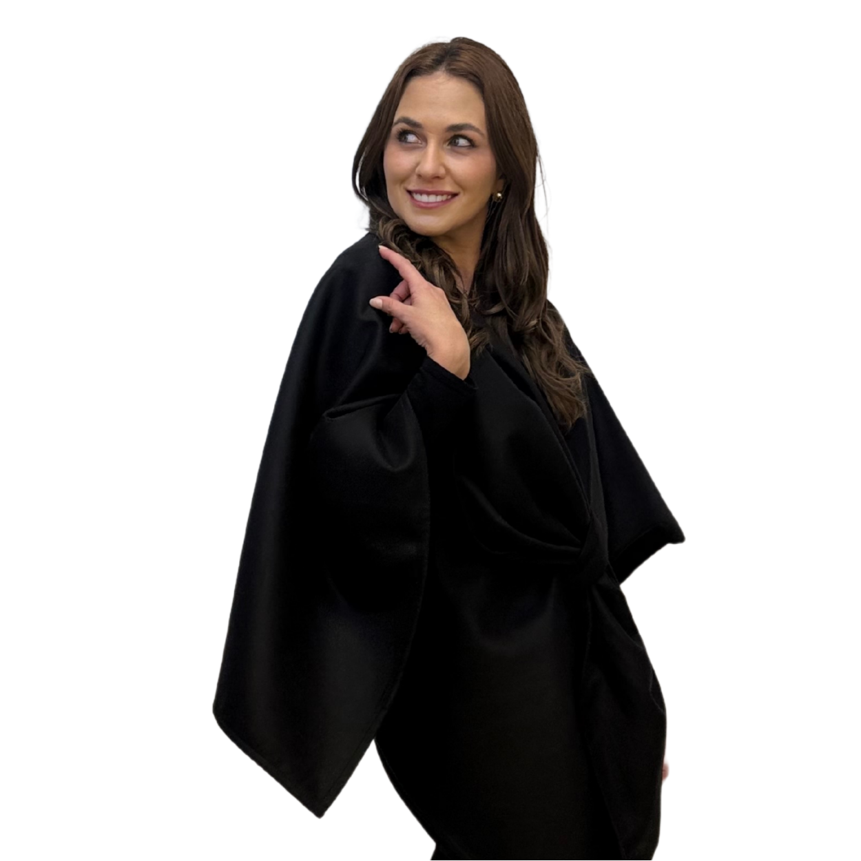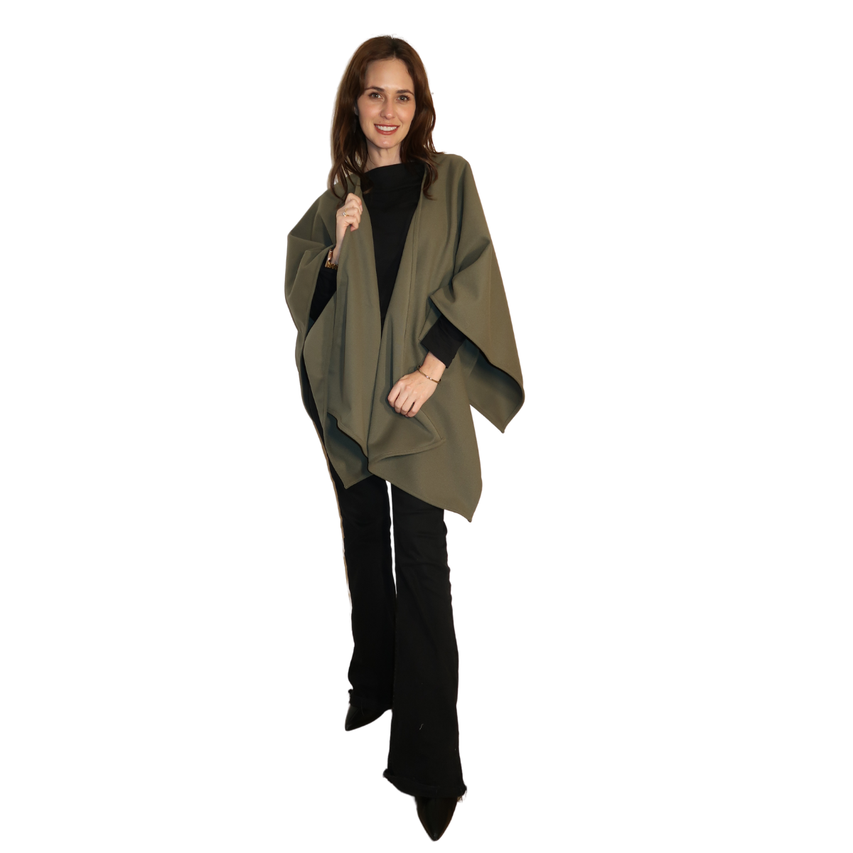 La Capa Olivia es una prenda de talla única que se adapta perfectamente a diferentes tipos de cuerpo. Con un pasador que permite cerrarla y crear hasta seis estilos distintos, puede usarse larga, corta, asimétrica o cruzada. Ideal para bodas, grados, bautizos y eventos formales, es perfecta también para viajes gracias a su versatilidad y facilidad de empaque. Hecha de paño premium, es ligera pero cálida, adaptándose al cuerpo con el calor corporal. Su diseño envolvente ofrece confort y estructura, y viene con un instructivo para maximizar su versatilidad.