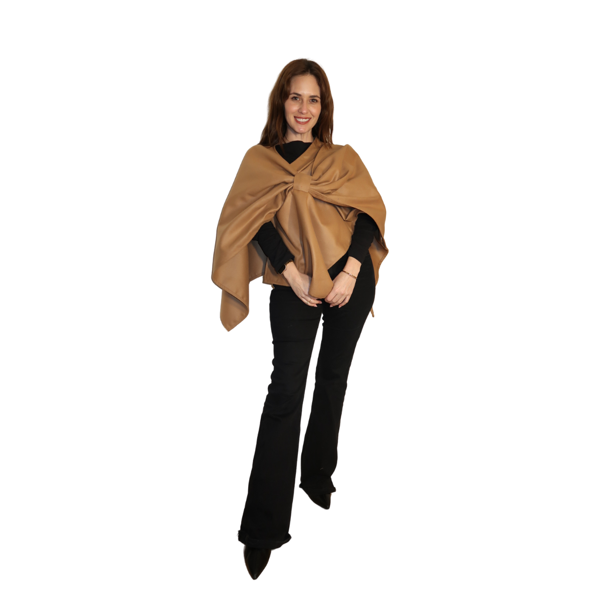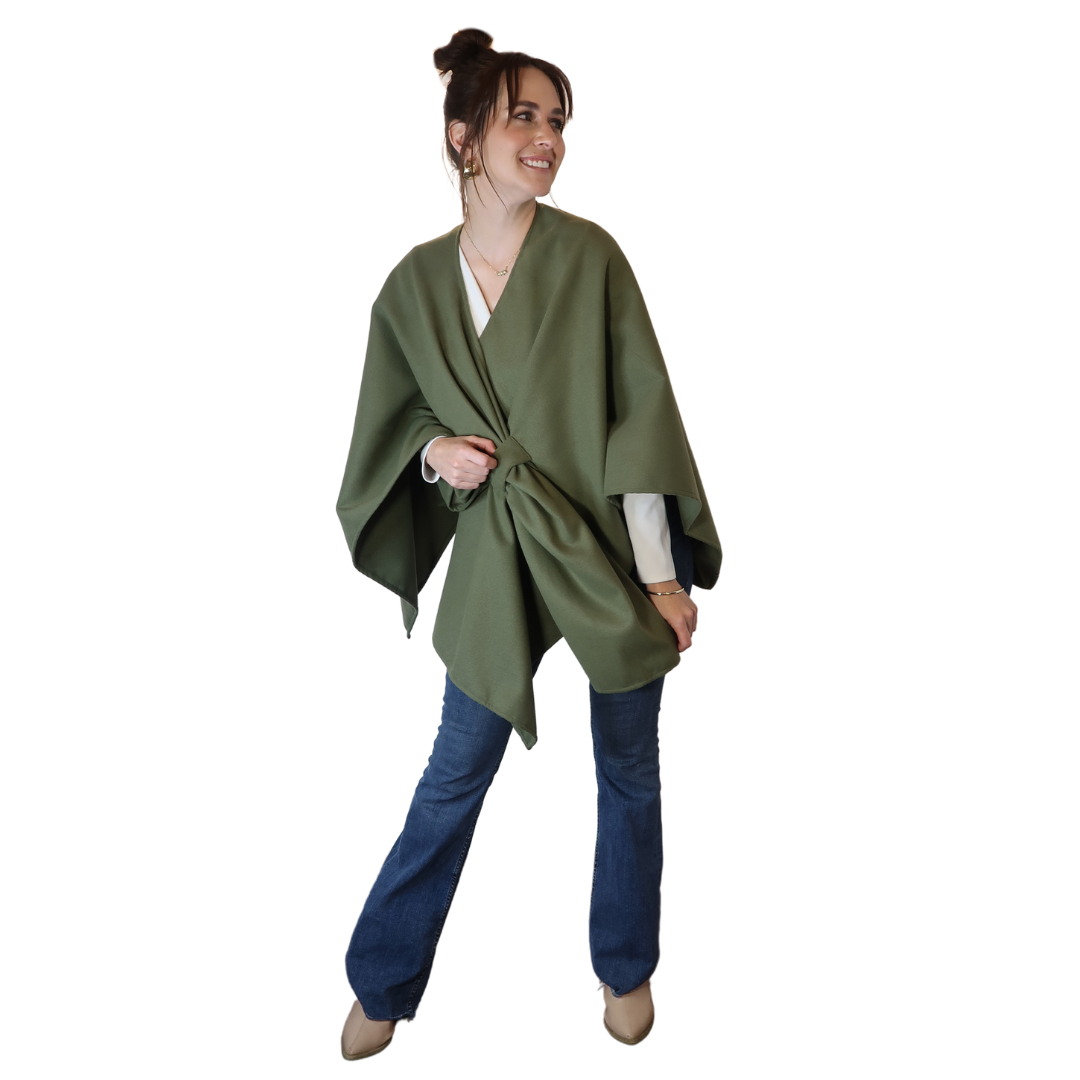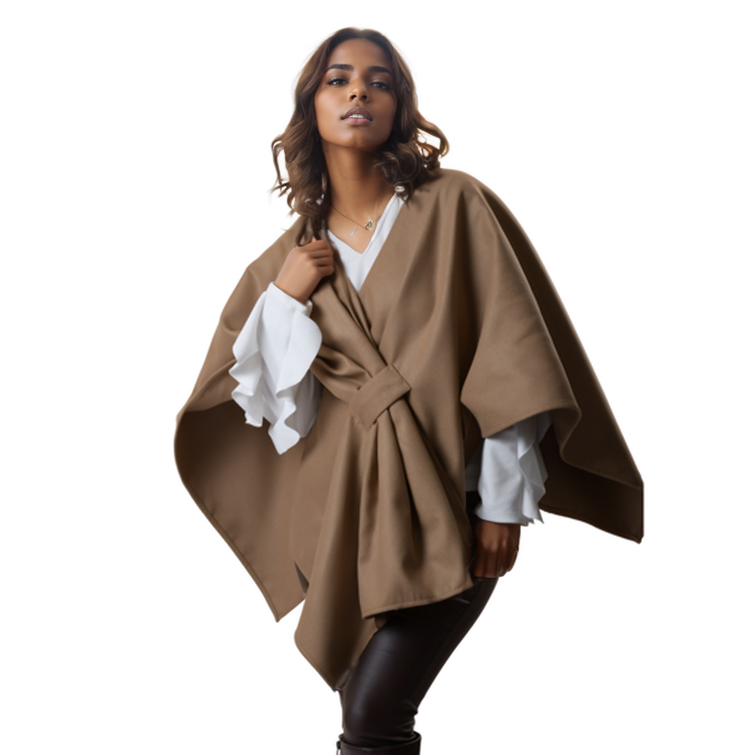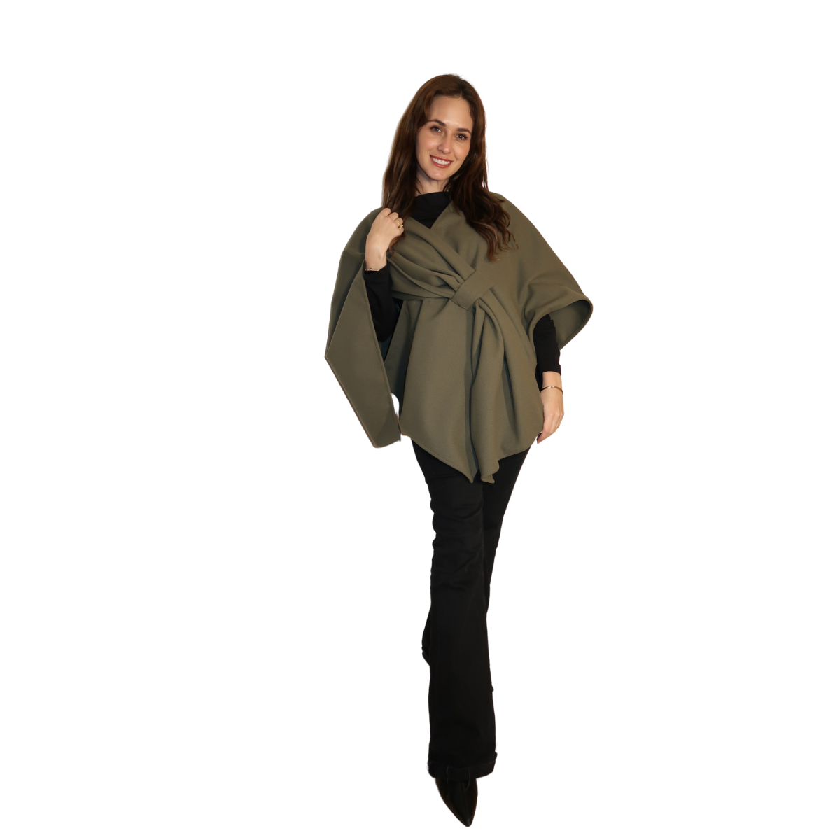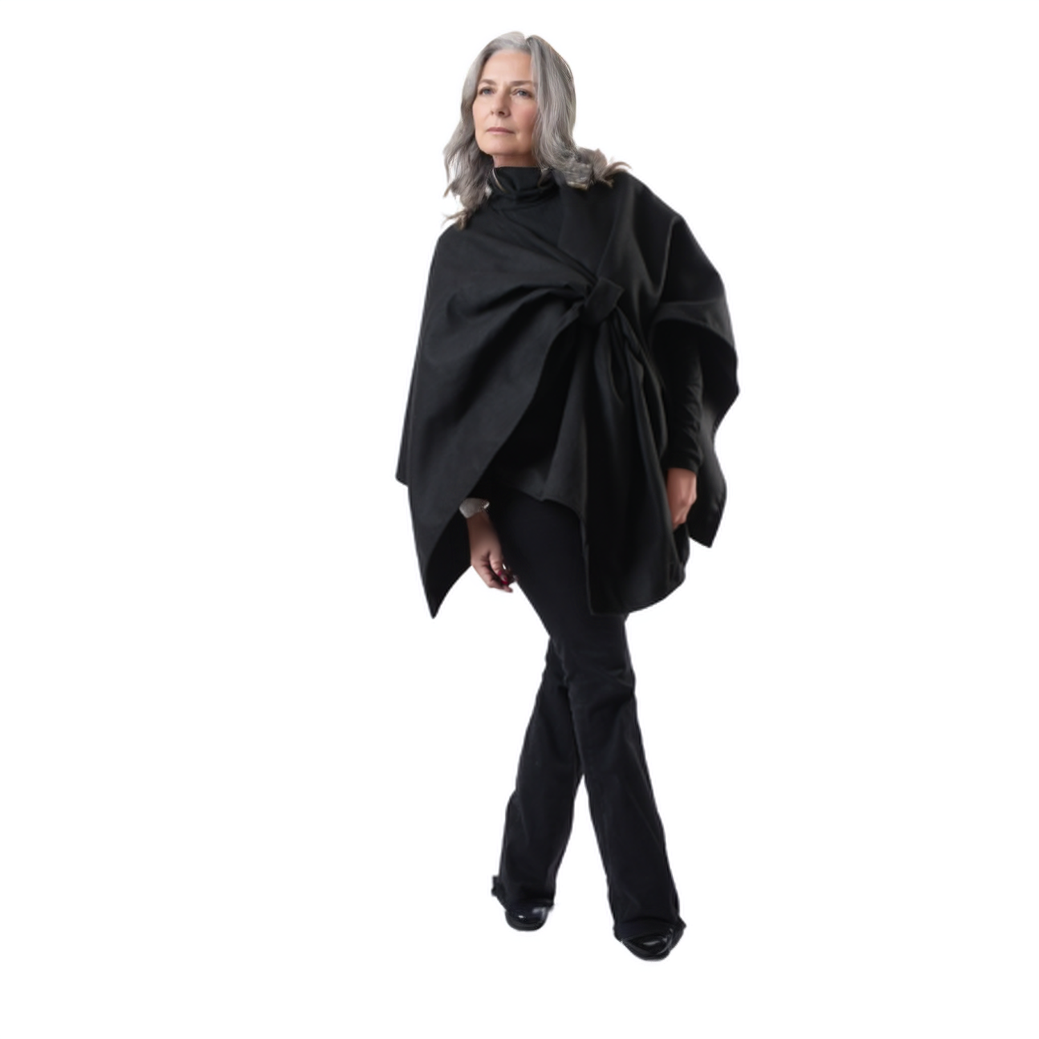 La Capa Olivia es una prenda de talla única que se adapta perfectamente a diferentes tipos de cuerpo. Con un pasador que permite cerrarla y crear hasta seis estilos distintos, puede usarse larga, corta, asimétrica o cruzada. Ideal para bodas, grados, bautizos y eventos formales, es perfecta también para viajes gracias a su versatilidad y facilidad de empaque. Hecha de paño premium, es ligera pero cálida, adaptándose al cuerpo con el calor corporal. Su diseño envolvente ofrece confort y estructura, y viene con un instructivo para maximizar su versatilidad.