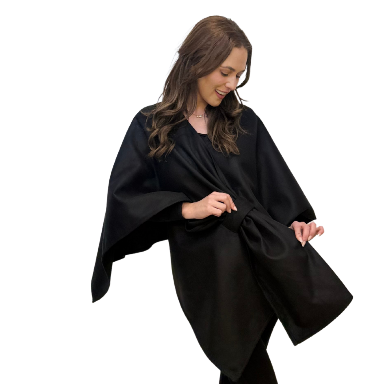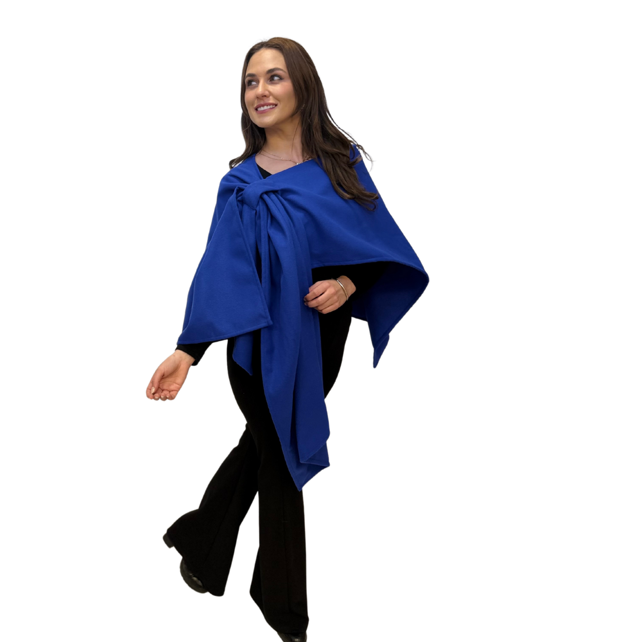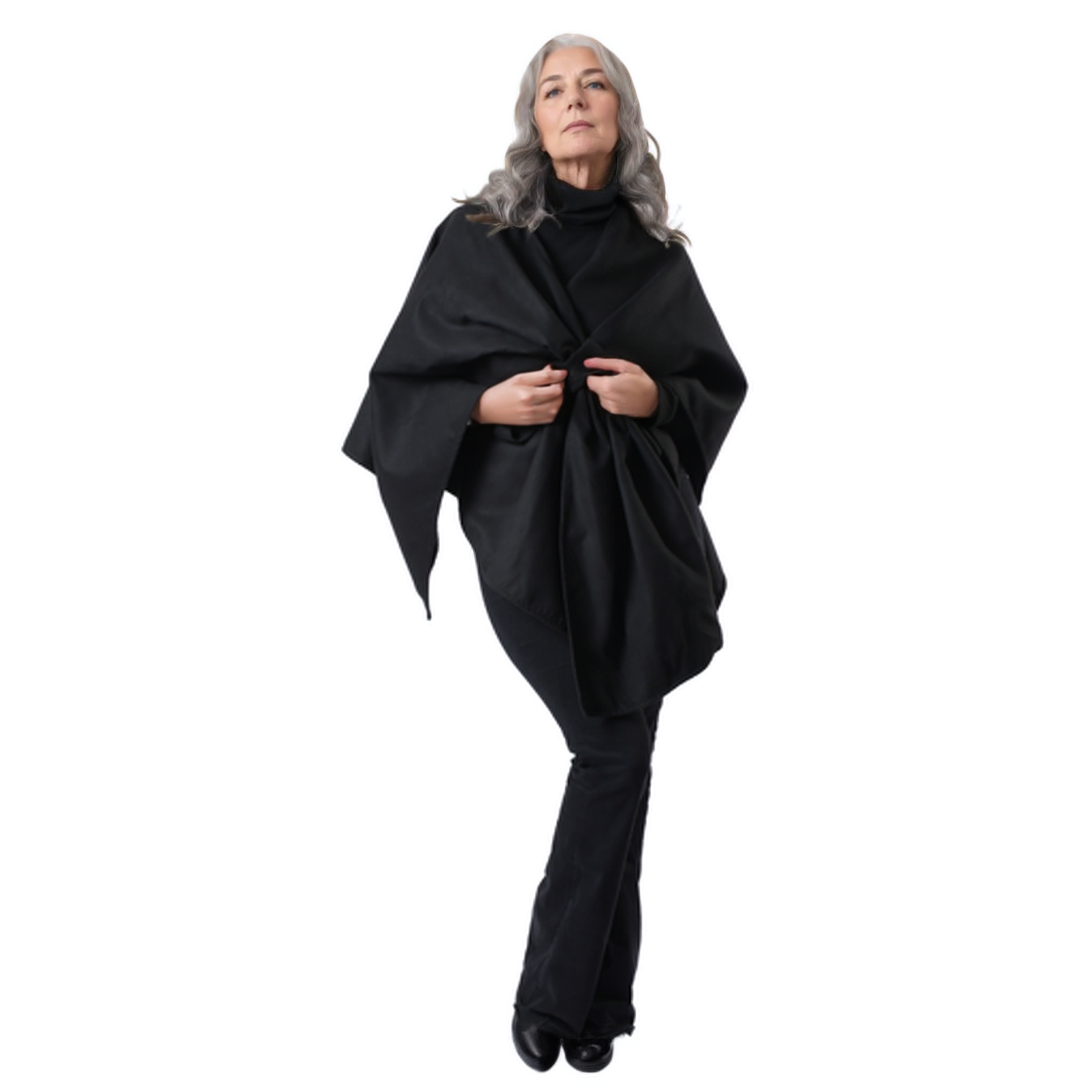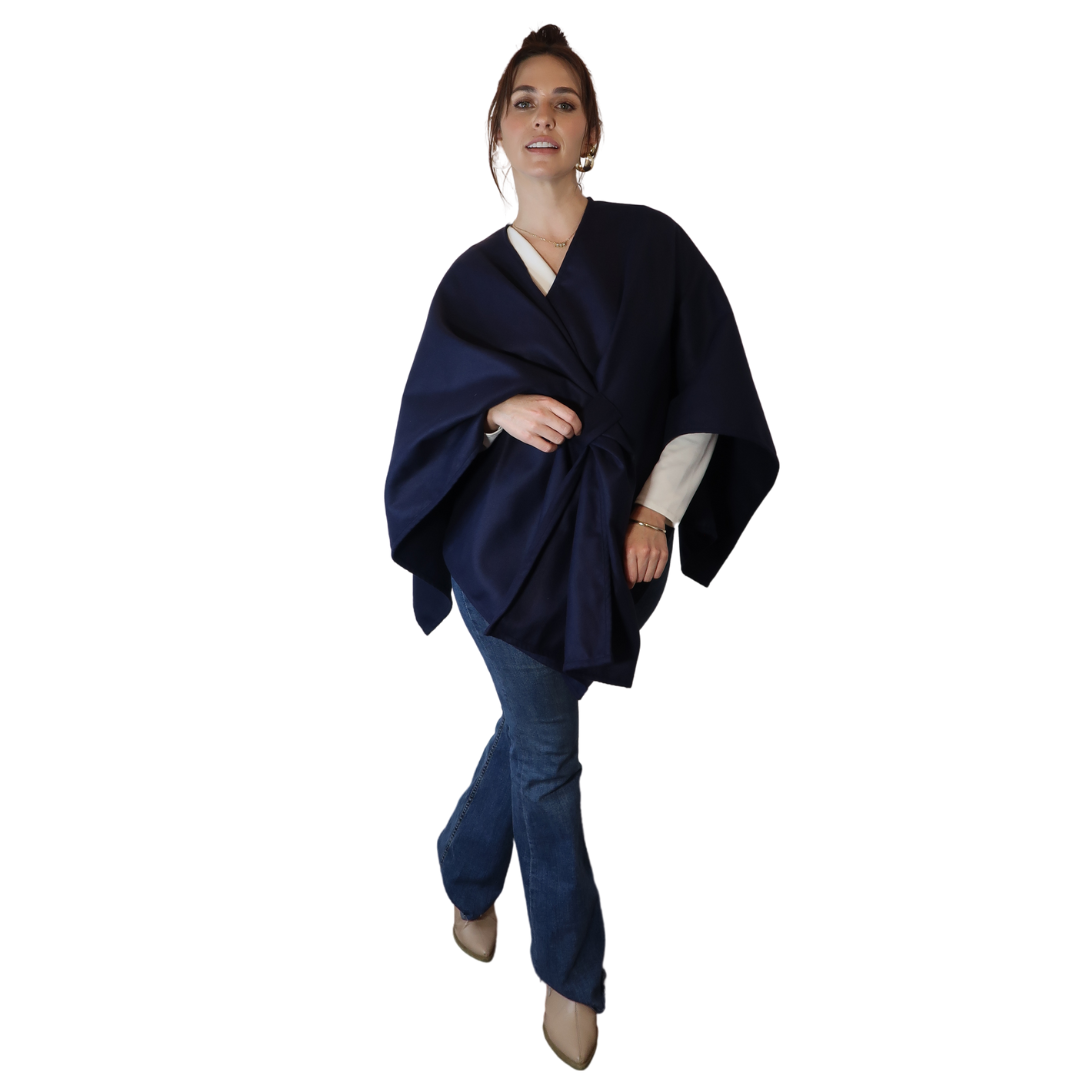 La Capa Olivia es una prenda de talla única que se adapta perfectamente a diferentes tipos de cuerpo. Con un pasador que permite cerrarla y crear hasta seis estilos distintos, puede usarse larga, corta, asimétrica o cruzada. Ideal para bodas, grados, bautizos y eventos formales, es perfecta también para viajes gracias a su versatilidad y facilidad de empaque. Hecha de paño premium, es ligera pero cálida, adaptándose al cuerpo con el calor corporal. Su diseño envolvente ofrece confort y estructura, y viene con un instructivo para maximizar su versatilidad.