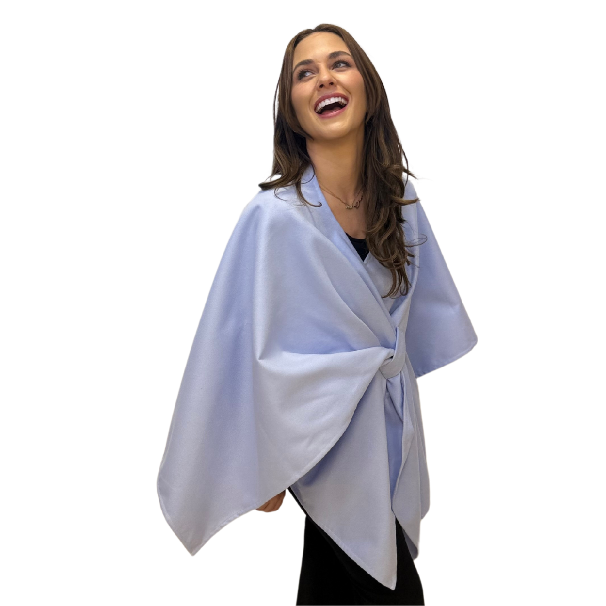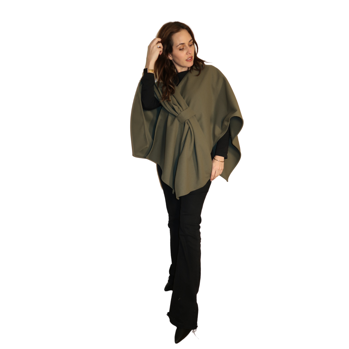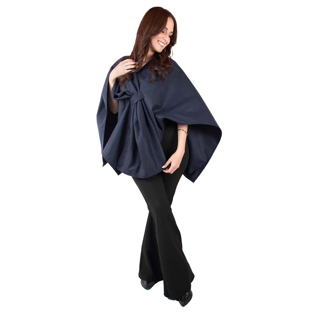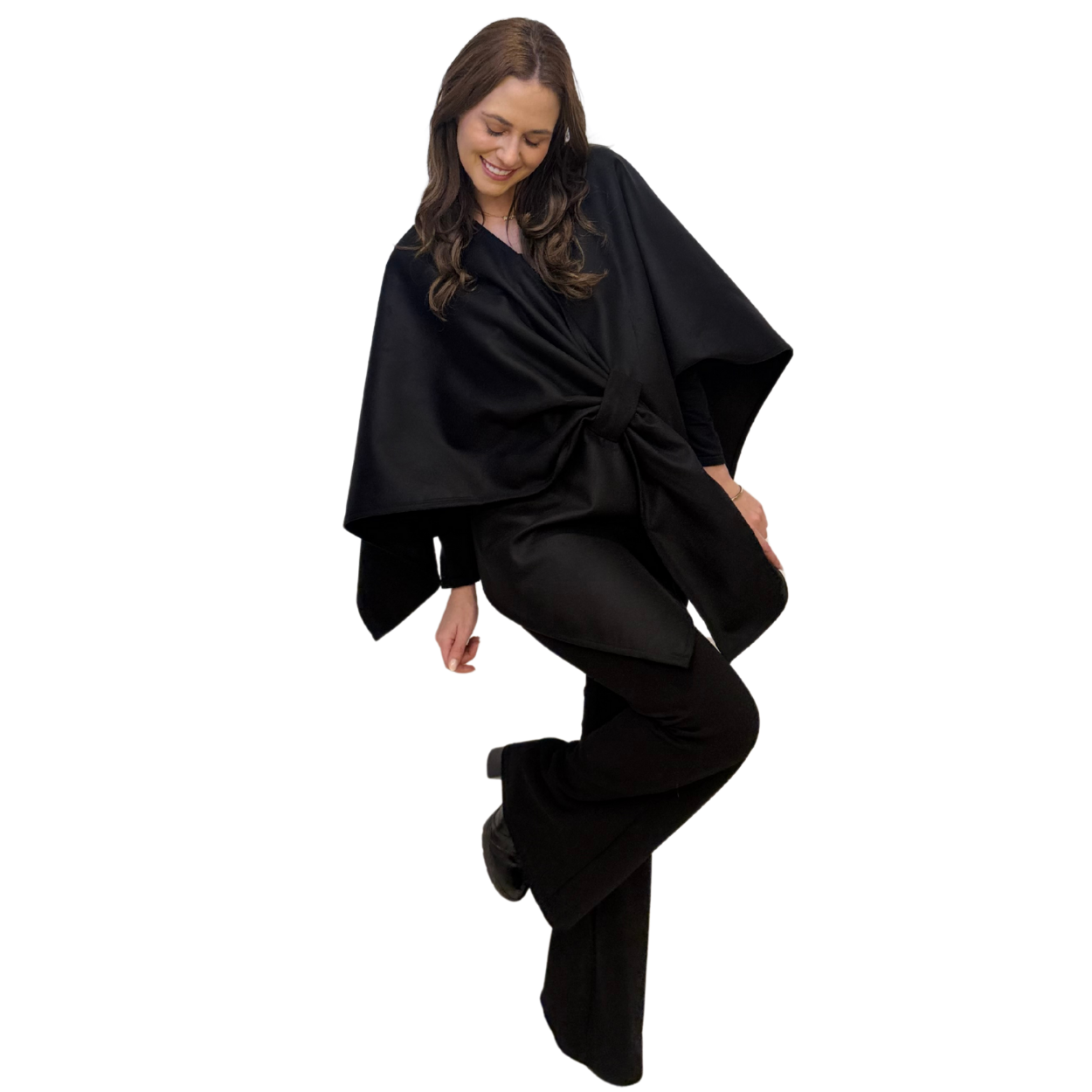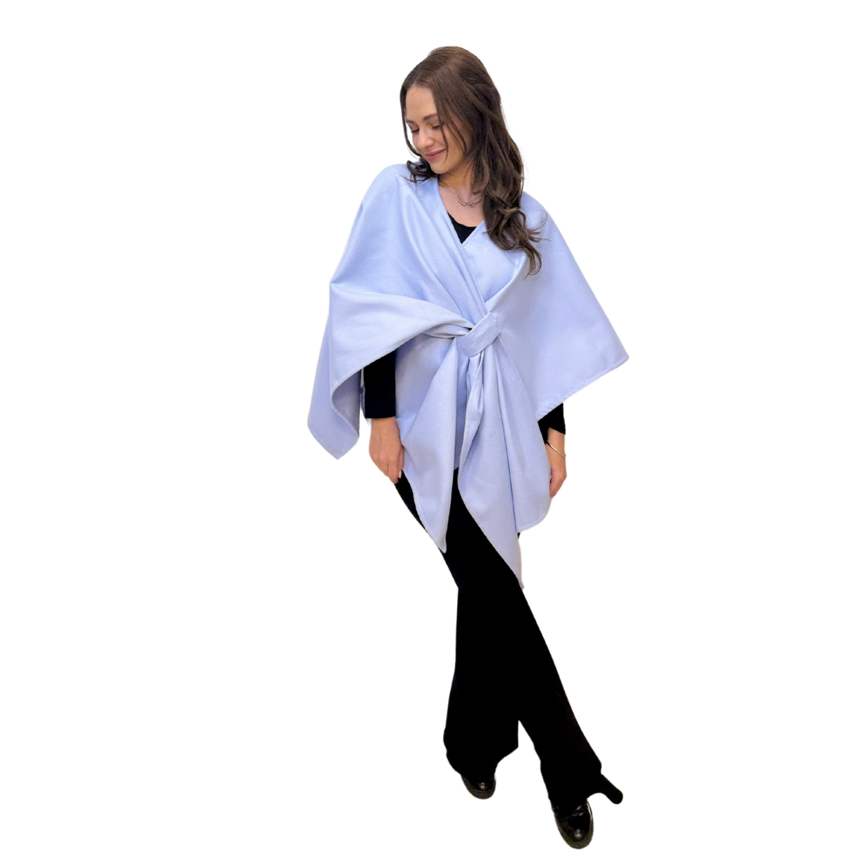 La Capa Olivia es una prenda de talla única que se adapta perfectamente a diferentes tipos de cuerpo. Con un pasador que permite cerrarla y crear hasta seis estilos distintos, puede usarse larga, corta, asimétrica o cruzada. Ideal para bodas, grados, bautizos y eventos formales, es perfecta también para viajes gracias a su versatilidad y facilidad de empaque. Hecha de paño premium, es ligera pero cálida, adaptándose al cuerpo con el calor corporal. Su diseño envolvente ofrece confort y estructura, y viene con un instructivo para maximizar su versatilidad.