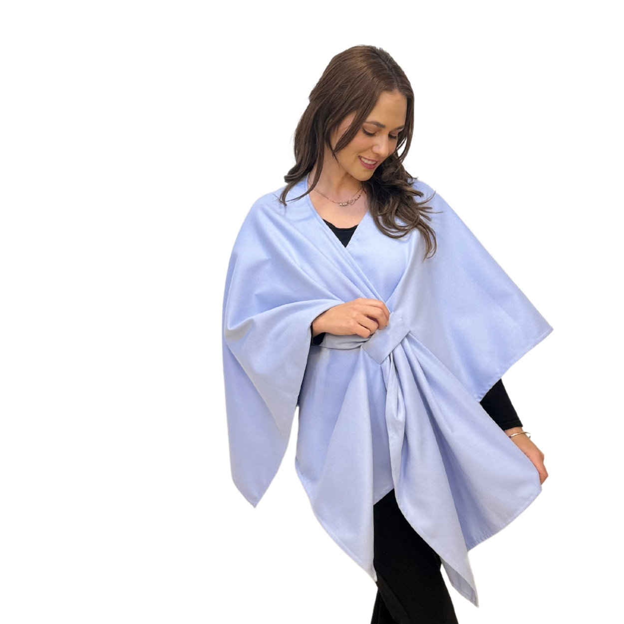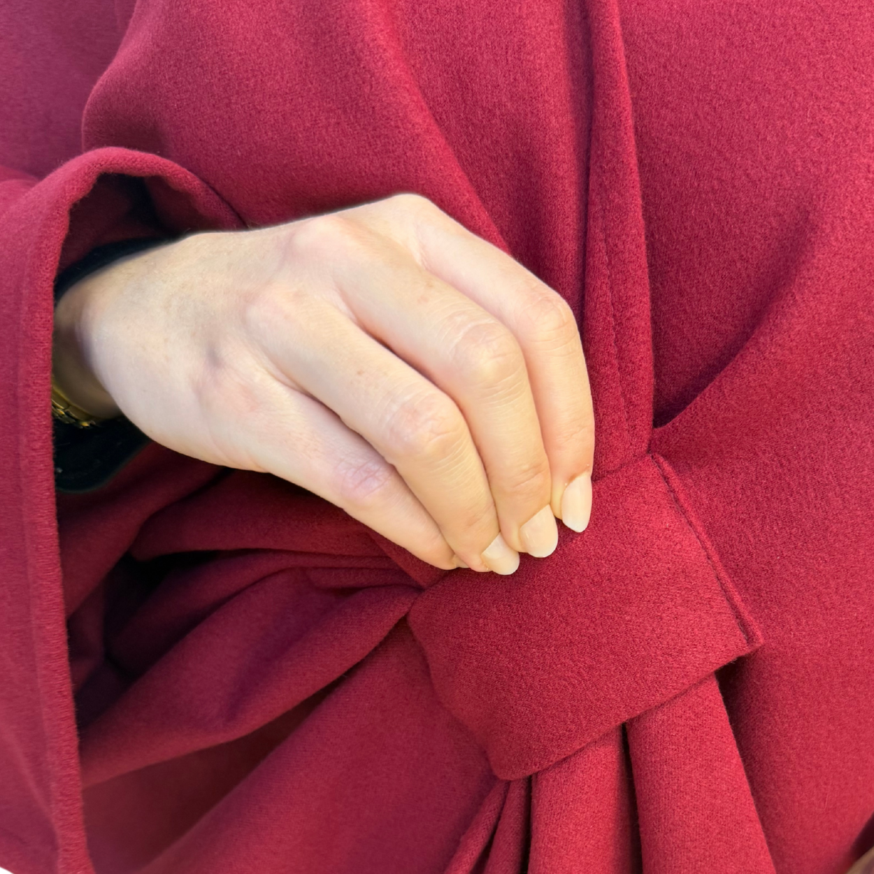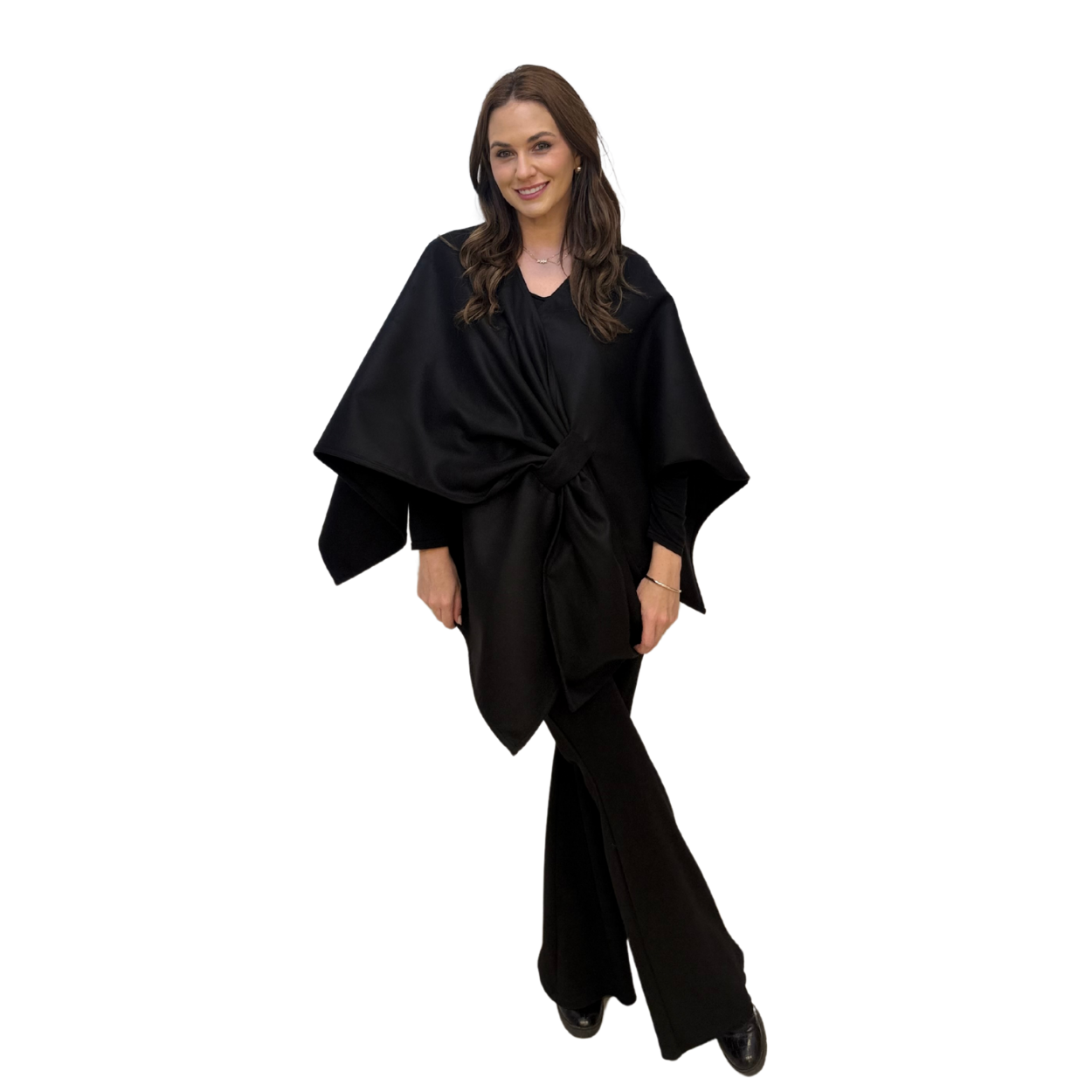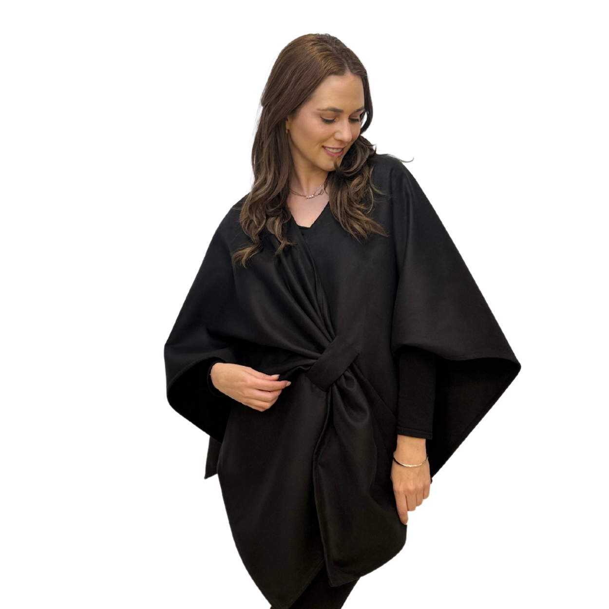 La Capa Olivia es una prenda de talla única que se adapta perfectamente a diferentes tipos de cuerpo. Con un pasador que permite cerrarla y crear hasta seis estilos distintos, puede usarse larga, corta, asimétrica o cruzada. Ideal para bodas, grados, bautizos y eventos formales, es perfecta también para viajes gracias a su versatilidad y facilidad de empaque. Hecha de paño premium, es ligera pero cálida, adaptándose al cuerpo con el calor corporal. Su diseño envolvente ofrece confort y estructura, y viene con un instructivo para maximizar su versatilidad.