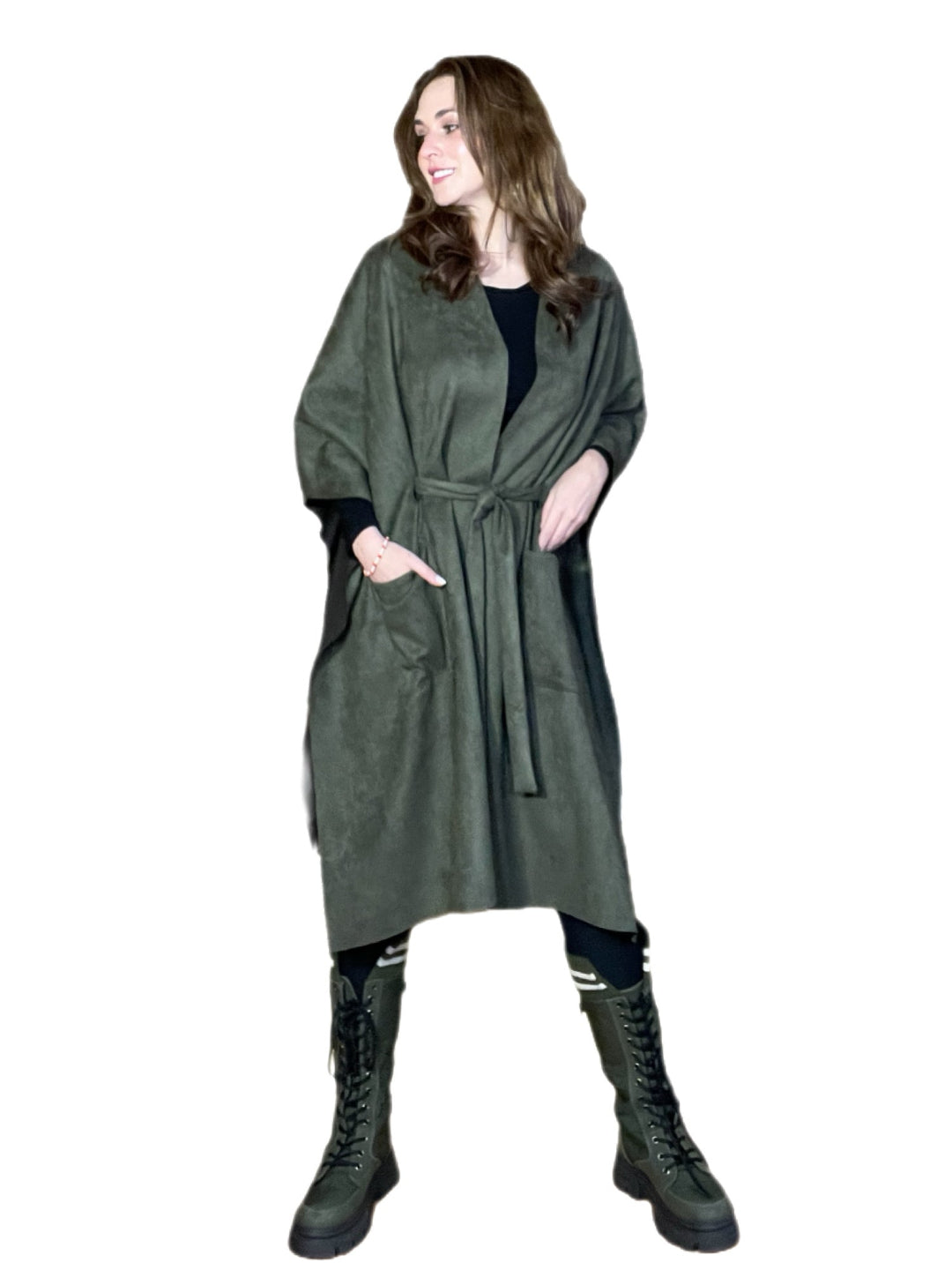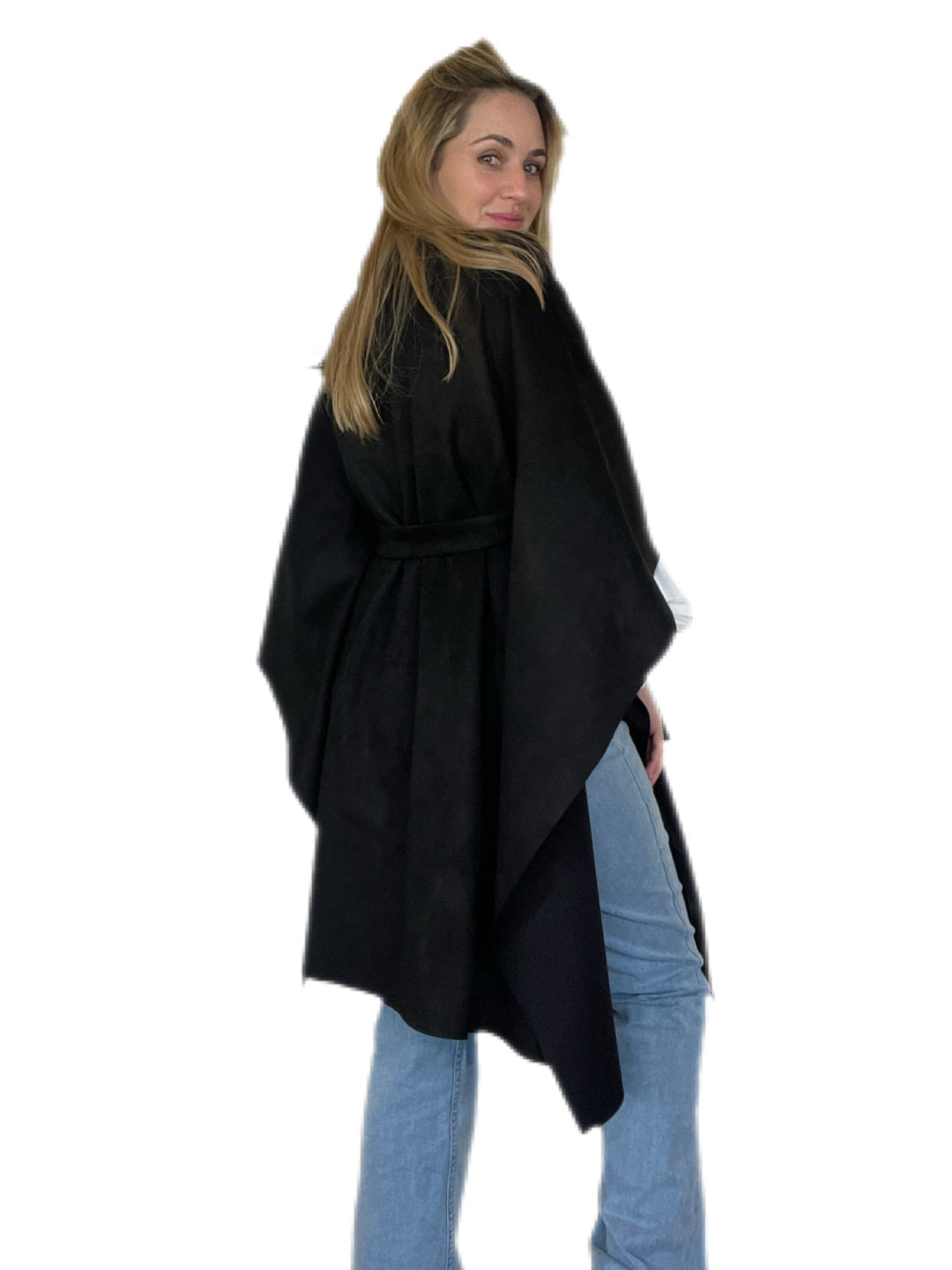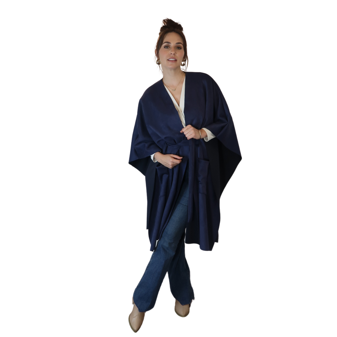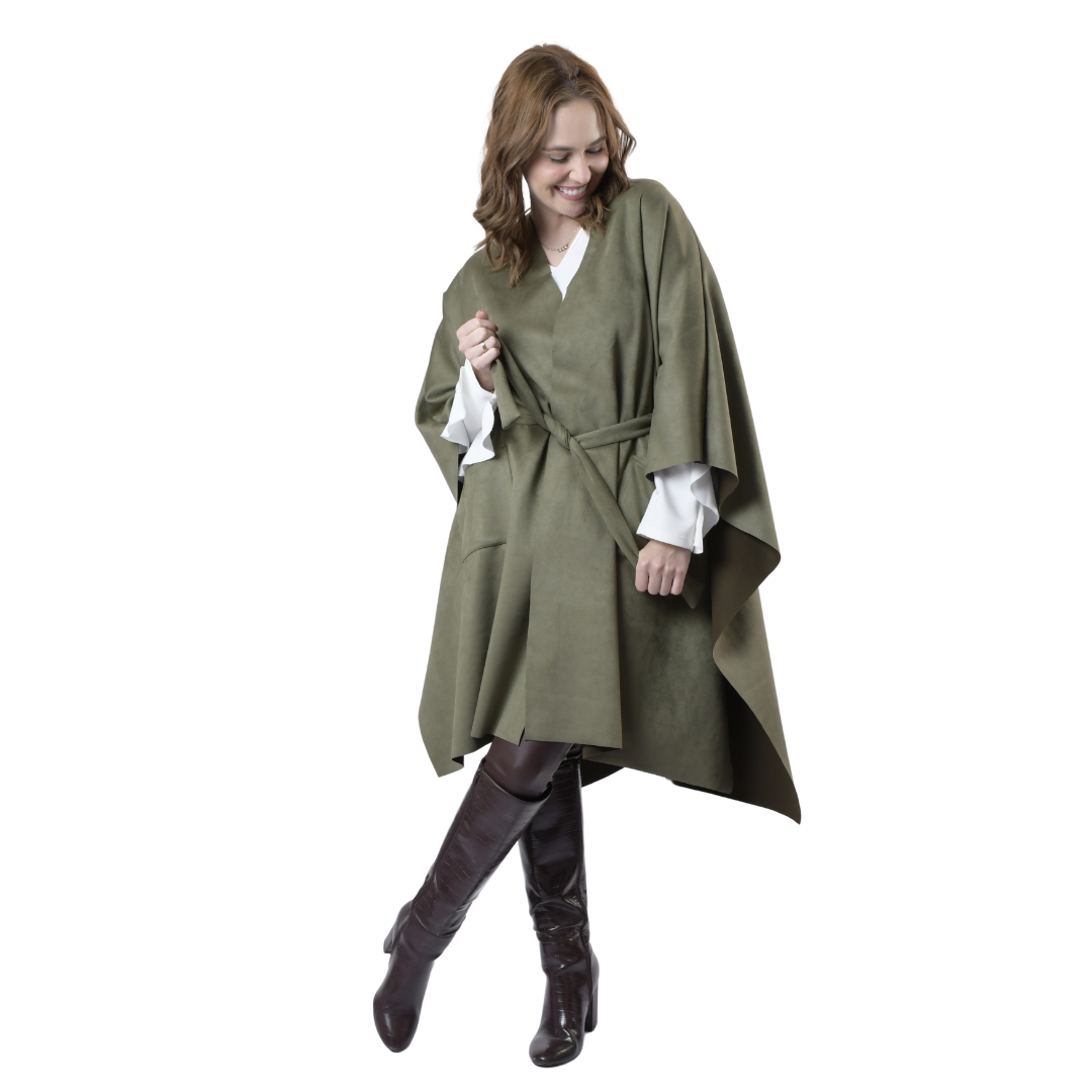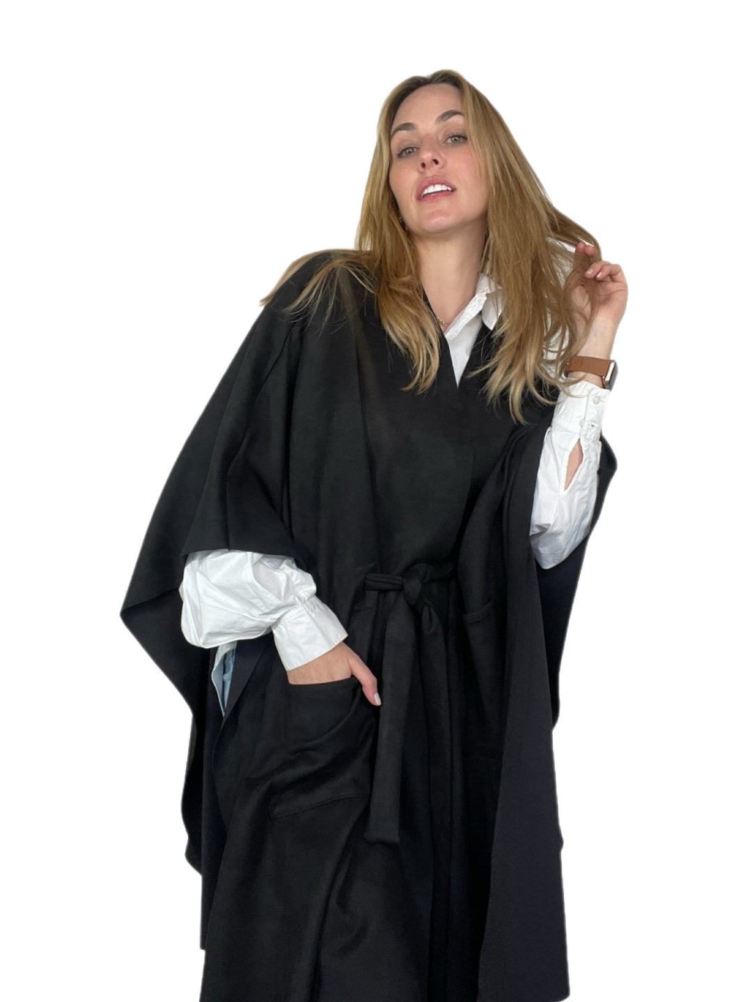 Abrigo Capa Fernanda, prenda 2 en 1 que se puede usar como abrigo clásico o capa sofisticada. Talla única que se adapta a diferentes cuerpos. Hecho en neopreno con acabado en gamuza sintética, suave y estructurado. Fajón removible para ajustar el estilo, con bolsillos funcionales para lo esencial. Ligero, cálido y perfecto para cambios de temperatura. Ideal para trabajo, eventos formales, viajes o el día a día. Disponible en colores básicos, fácil de combinar. Elegante y práctico para mujeres que buscan sofisticación sin esfuerzo.