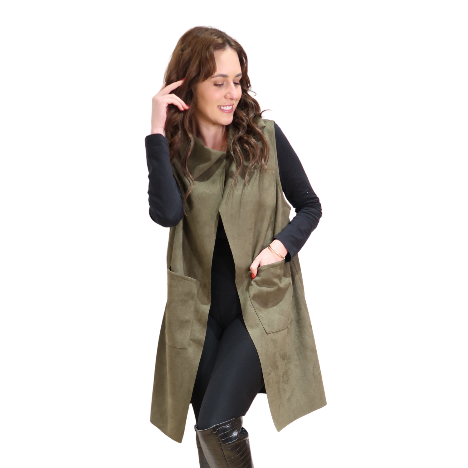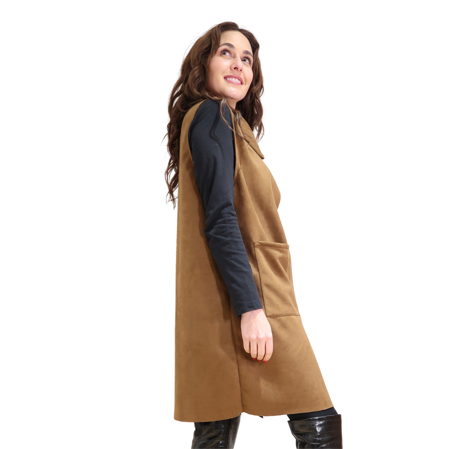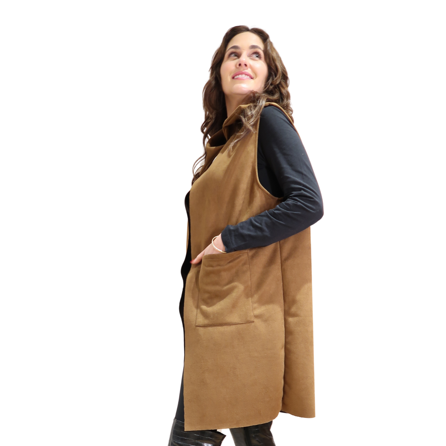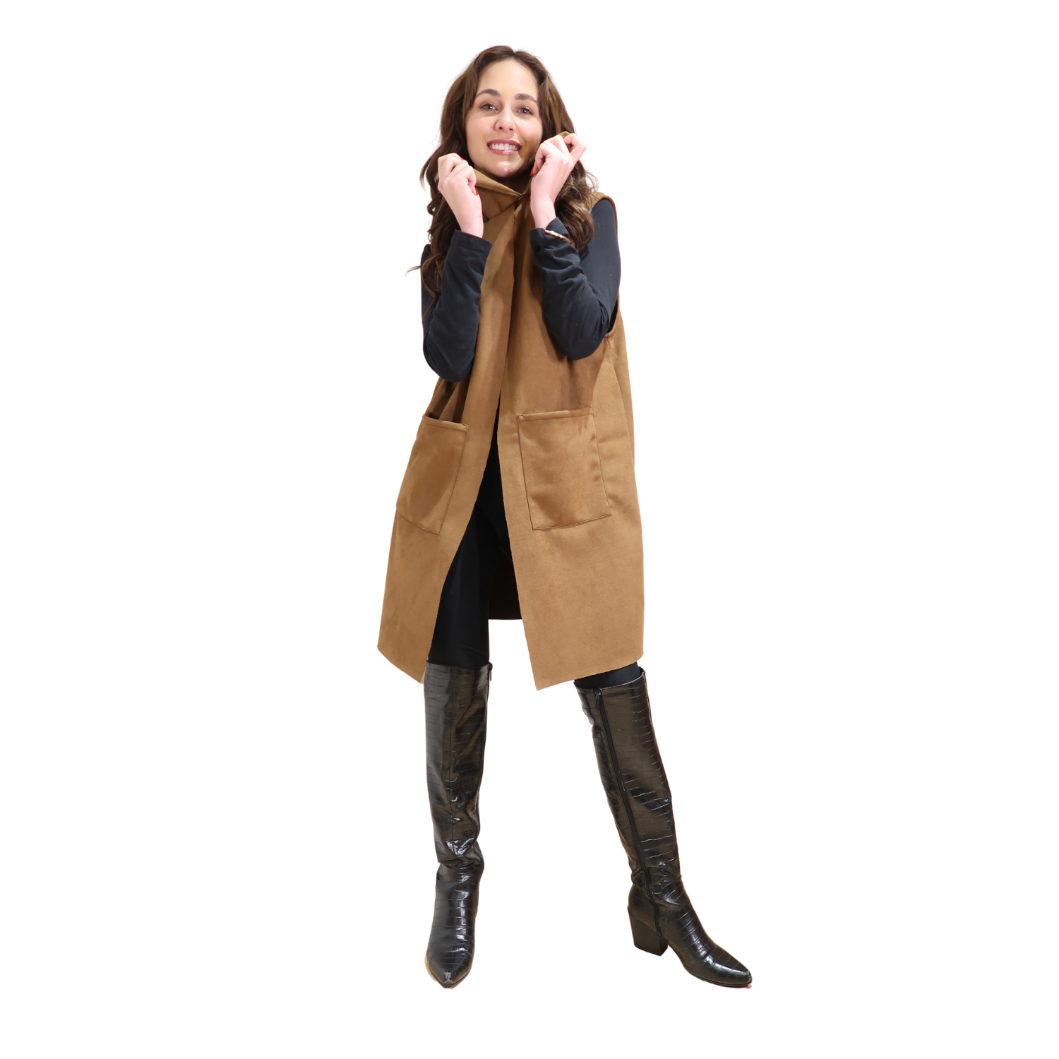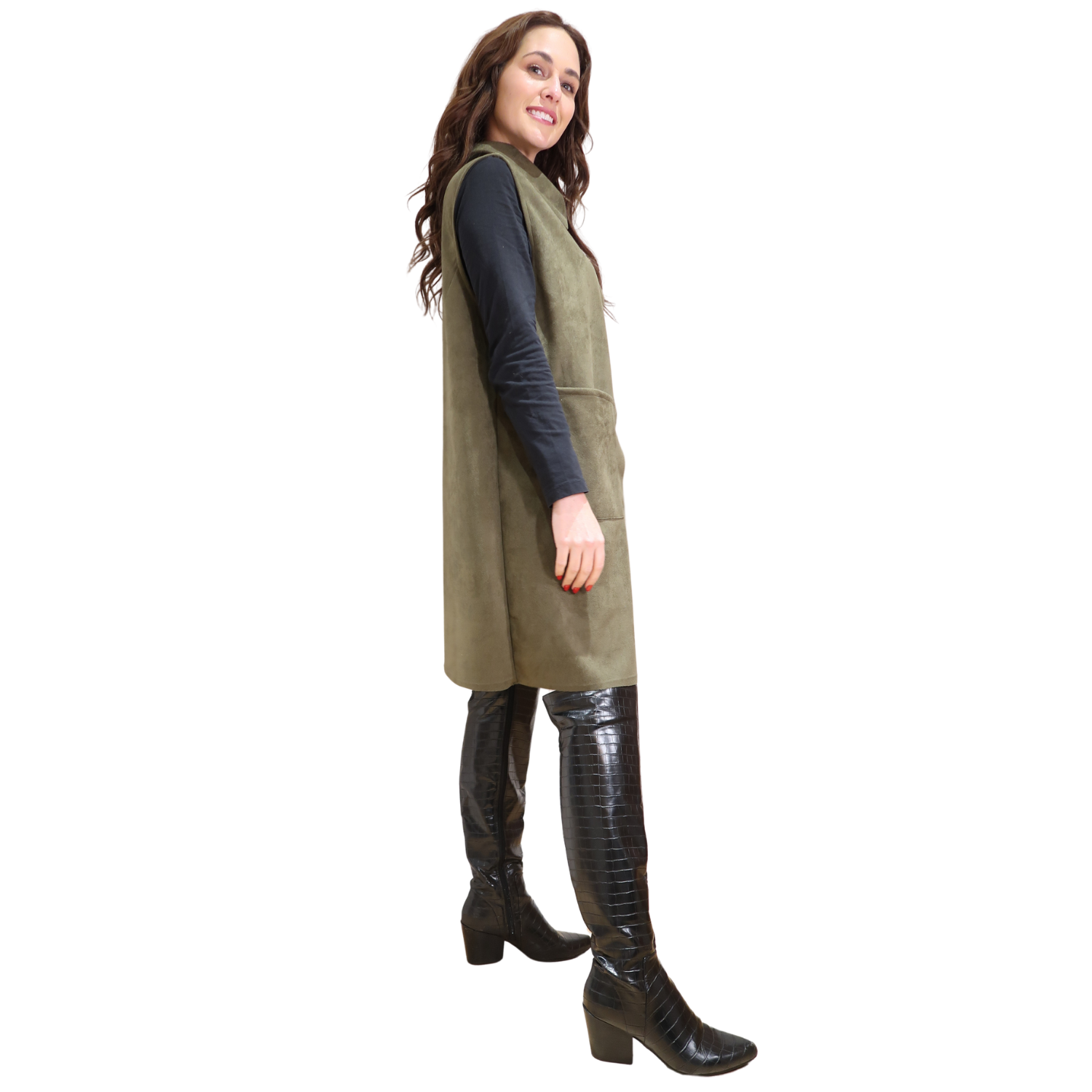 Este chaleco en gamuza suave, combina a la perfección elegancia y comodidad. Su diseño estructurado y su corte fluido ofrecen un ajuste ideal, mientras que los detalles cuidadosamente pensados le otorgan un estilo moderno y atemporal. Ideal para llevar sobre una blusa, vestido o incluso una camiseta básica, el chaleco Lorena es perfecto tanto para el día a día como para ocasiones especiales