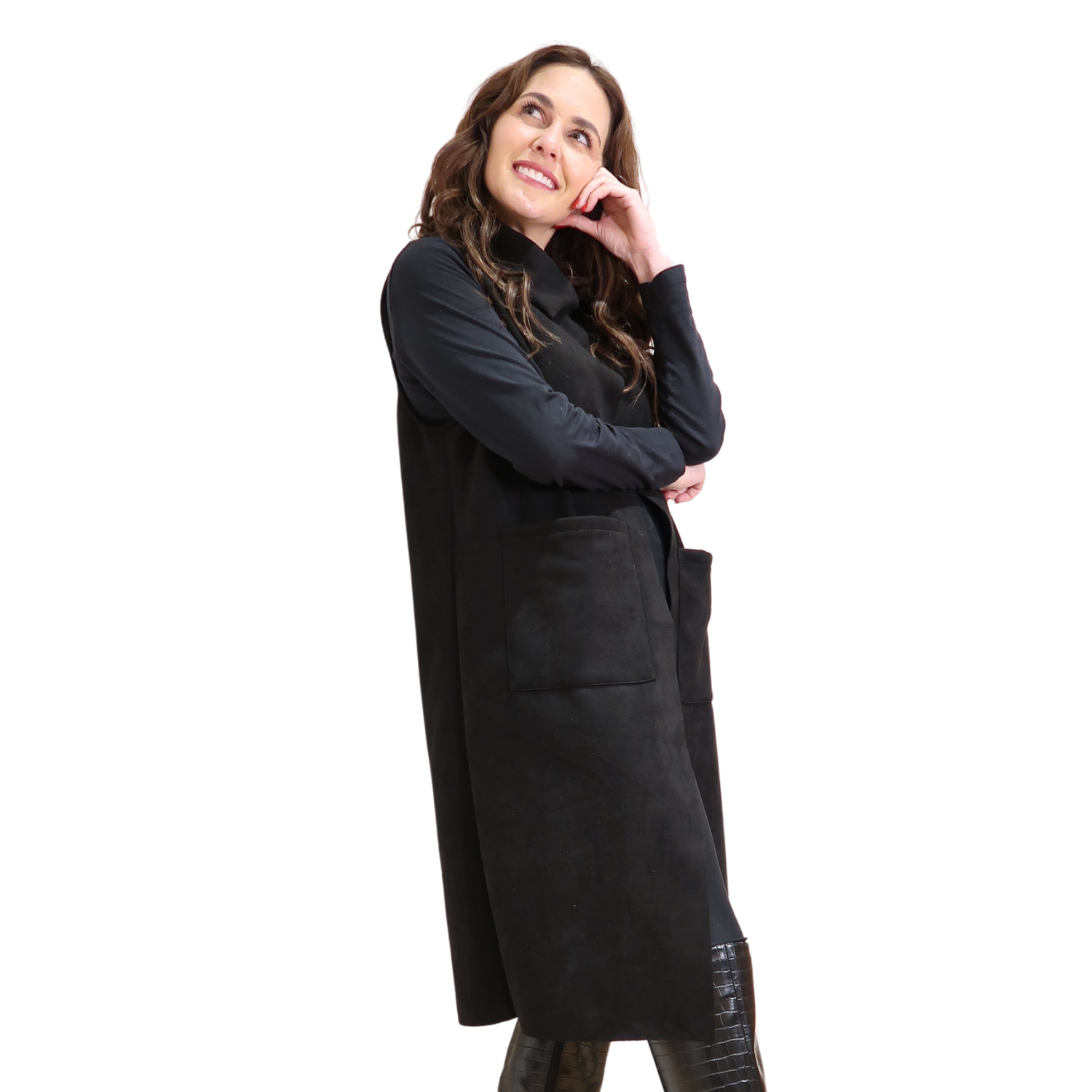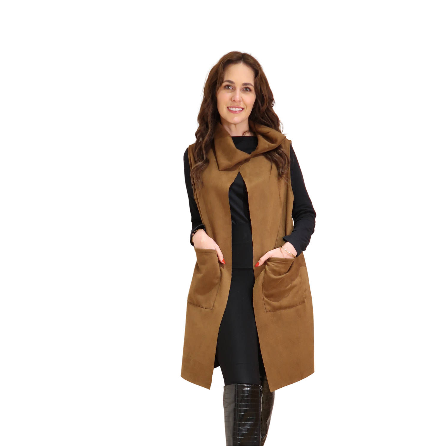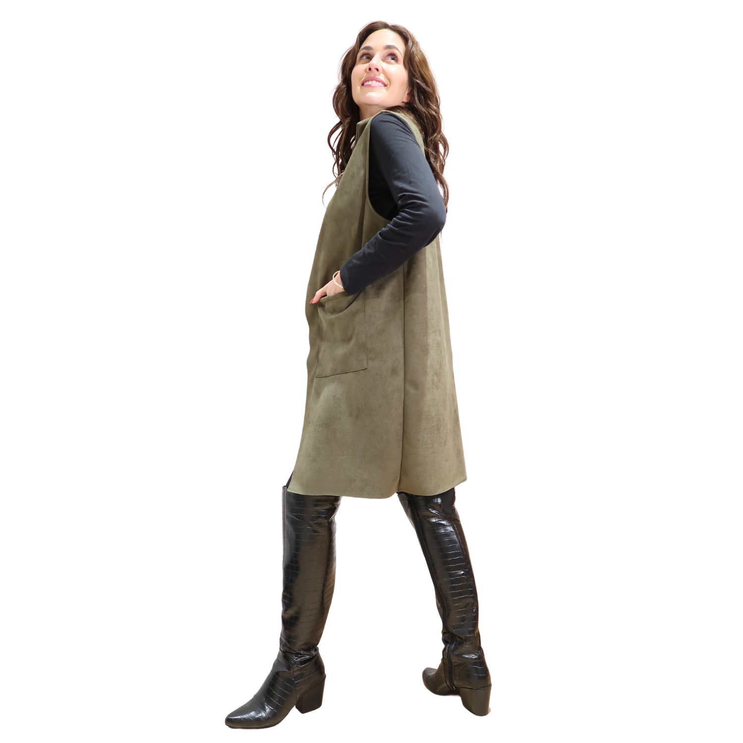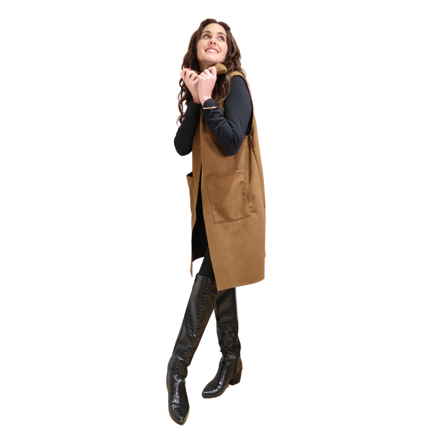 Este chaleco en gamuza suave, combina a la perfección elegancia y comodidad. Su diseño estructurado y su corte fluido ofrecen un ajuste ideal, mientras que los detalles cuidadosamente pensados le otorgan un estilo moderno y atemporal. Ideal para llevar sobre una blusa, vestido o incluso una camiseta básica, el chaleco Lorena es perfecto tanto para el día a día como para ocasiones especiales