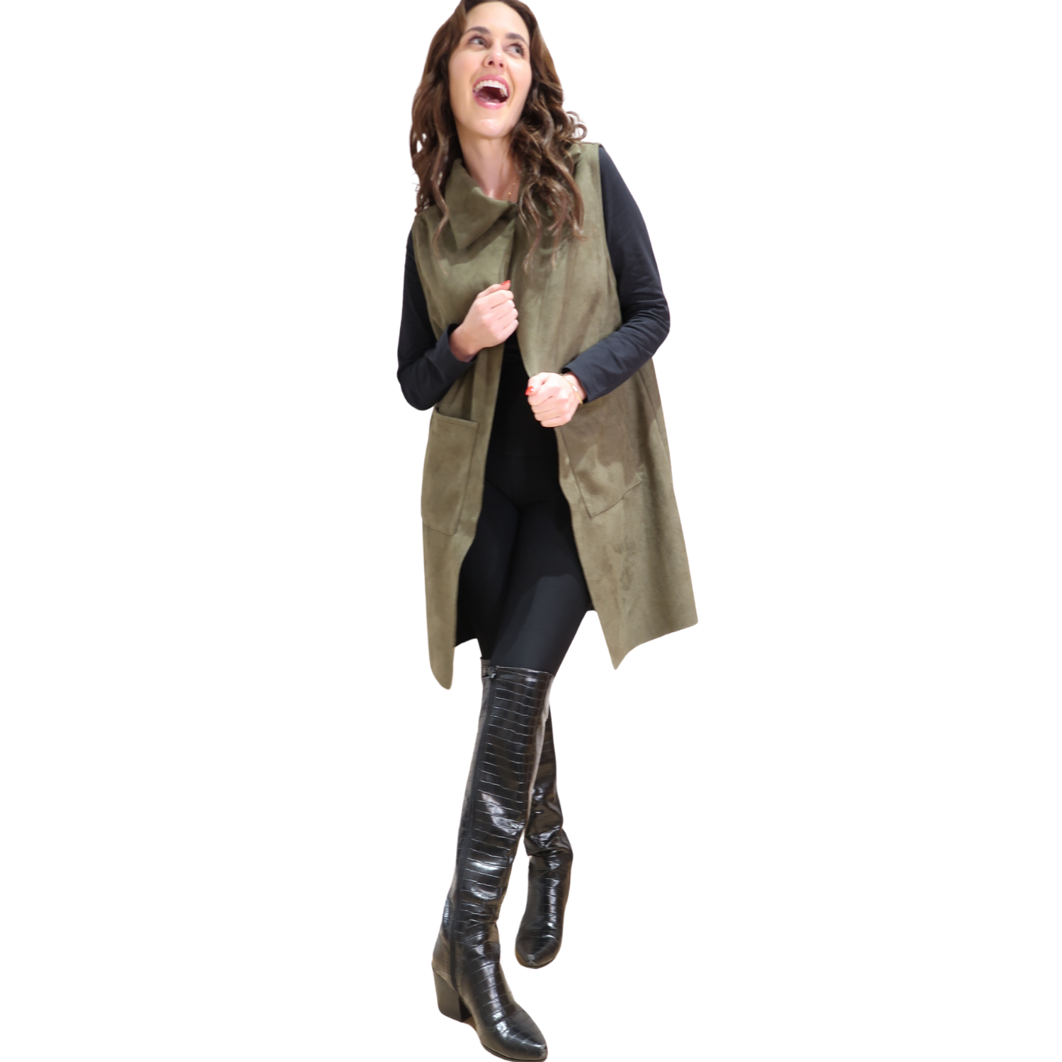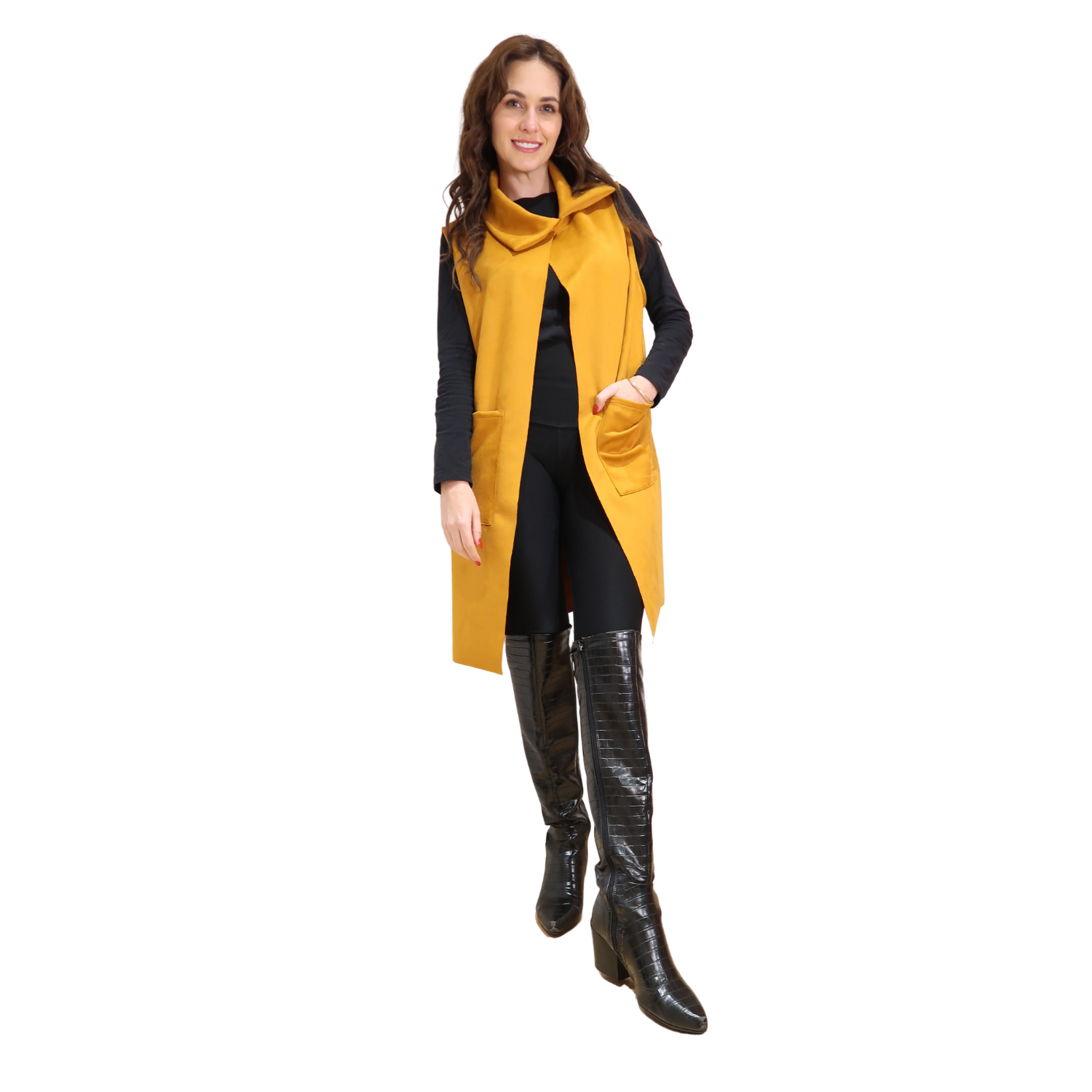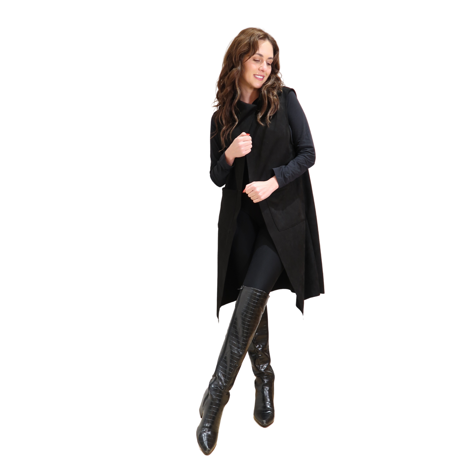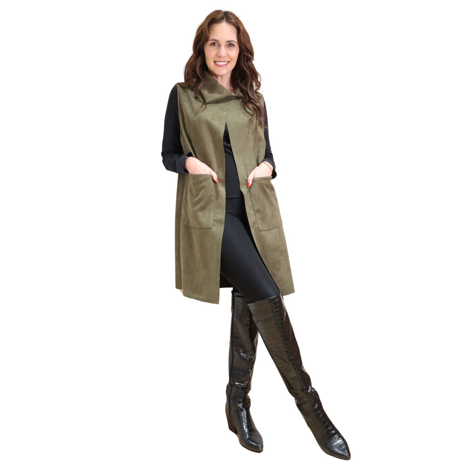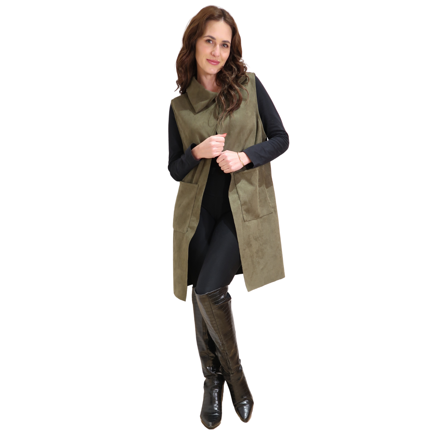 Este chaleco en gamuza suave, combina a la perfección elegancia y comodidad. Su diseño estructurado y su corte fluido ofrecen un ajuste ideal, mientras que los detalles cuidadosamente pensados le otorgan un estilo moderno y atemporal. Ideal para llevar sobre una blusa, vestido o incluso una camiseta básica, el chaleco Lorena es perfecto tanto para el día a día como para ocasiones especiales