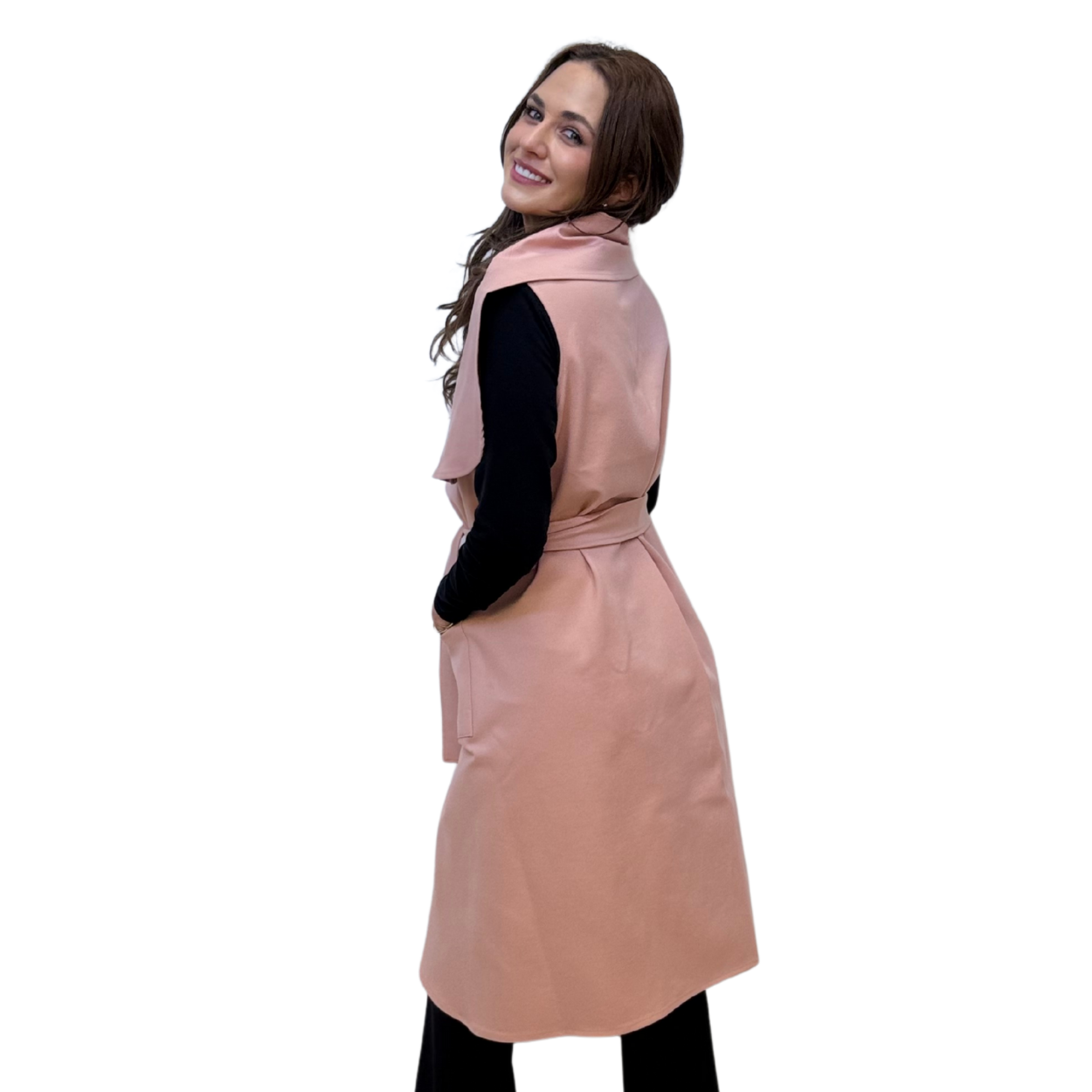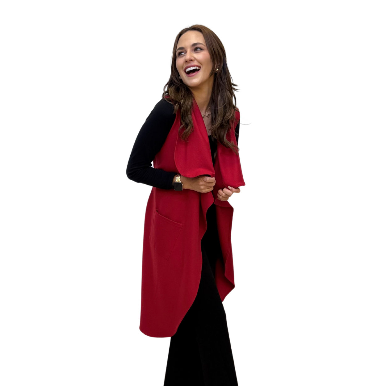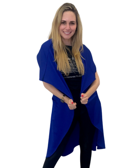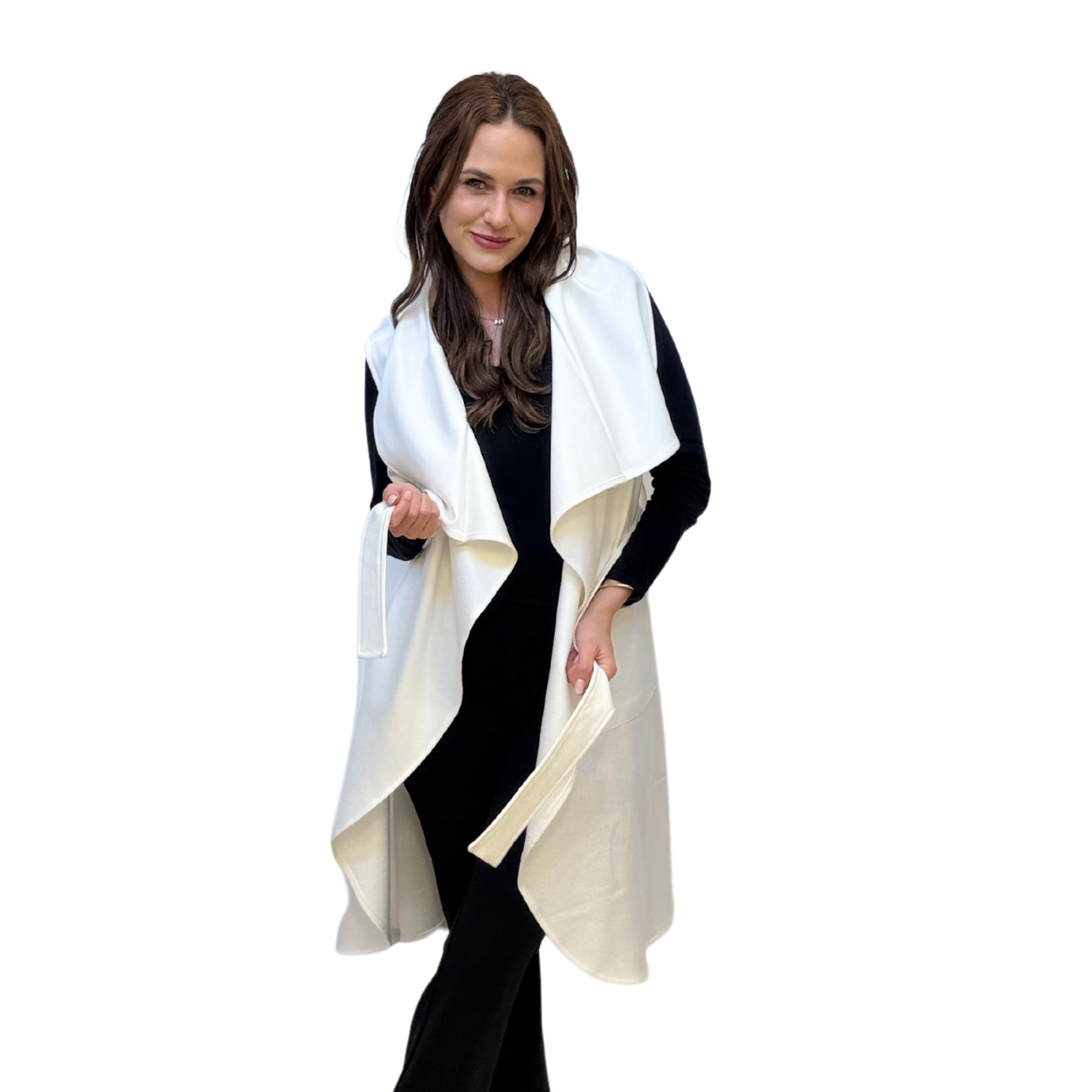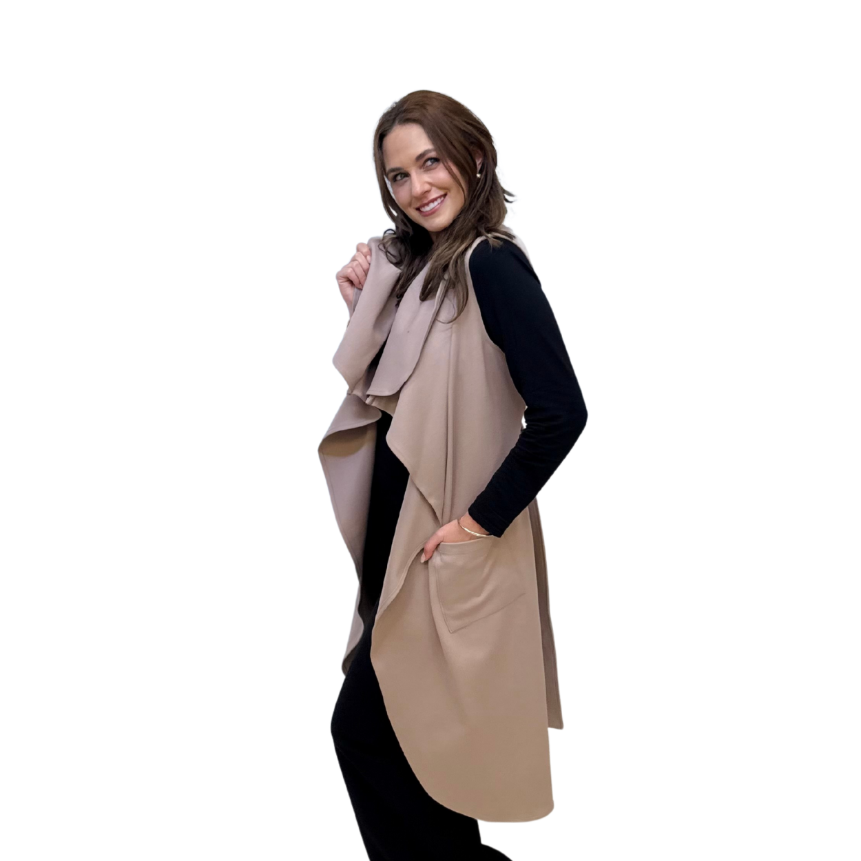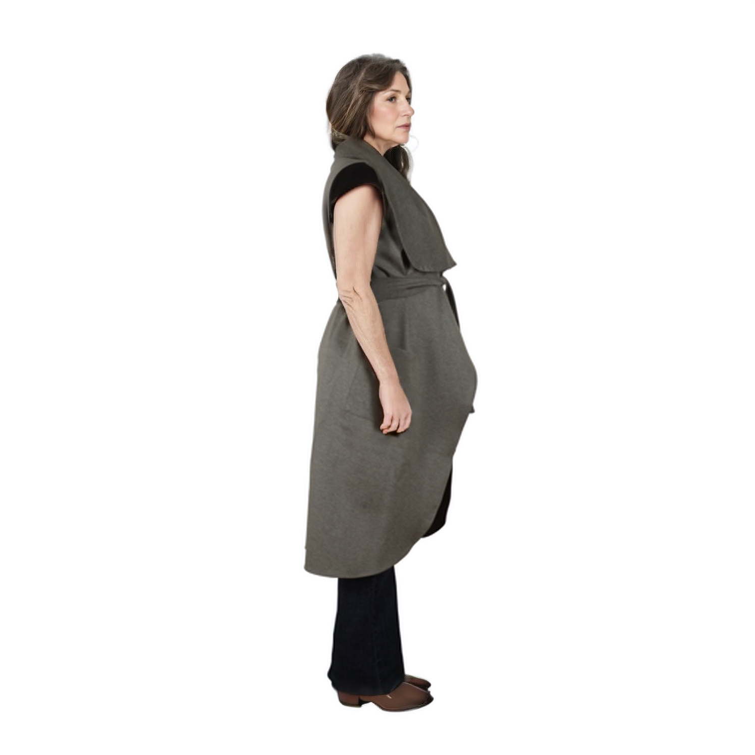 El Chaleco Luciana tiene un corte asimétrico, corto al frente y con caída progresiva en la parte trasera, creando un efecto estilizado. Su solapa curva puede usarse sobre los hombros para más cobertura o colgar para un look relajado. Talla única que se adapta a diferentes tipos de cuerpo, con bolsillos laterales funcionales y un cinturón removible para ajustar la cintura o llevarlo suelto. Ideal para oficina, días casuales o combinar con diferentes estilos, desde formales hasta informales. Hecho de tela liviana con buena caída, es versátil, cómodo y adecuado para cualquier temporada.