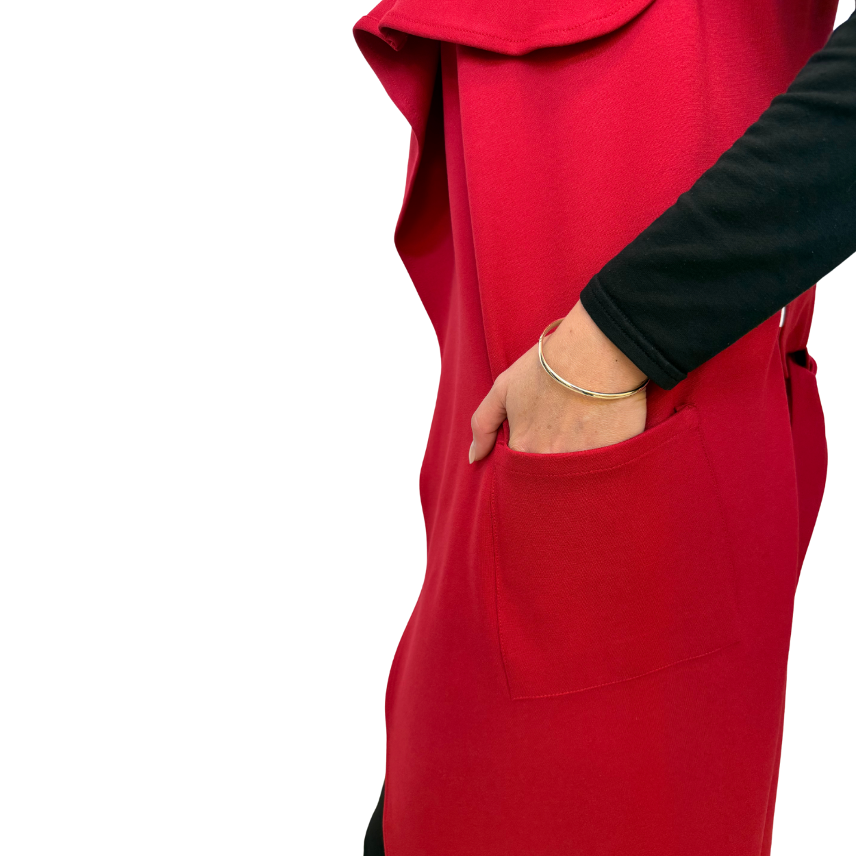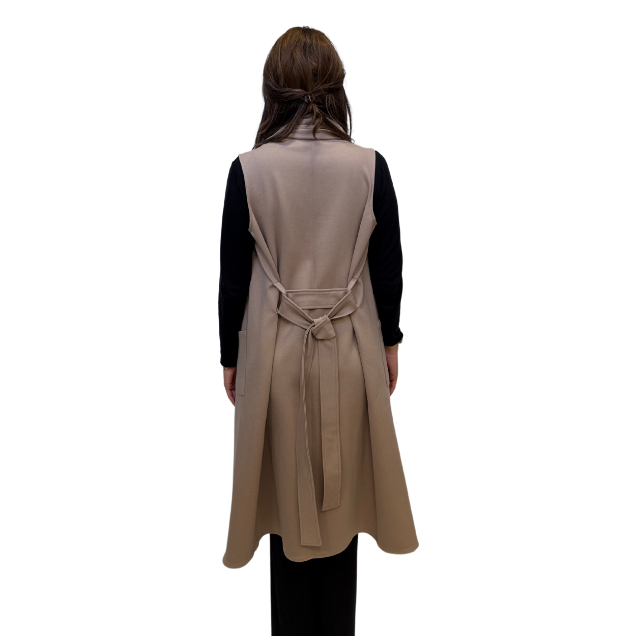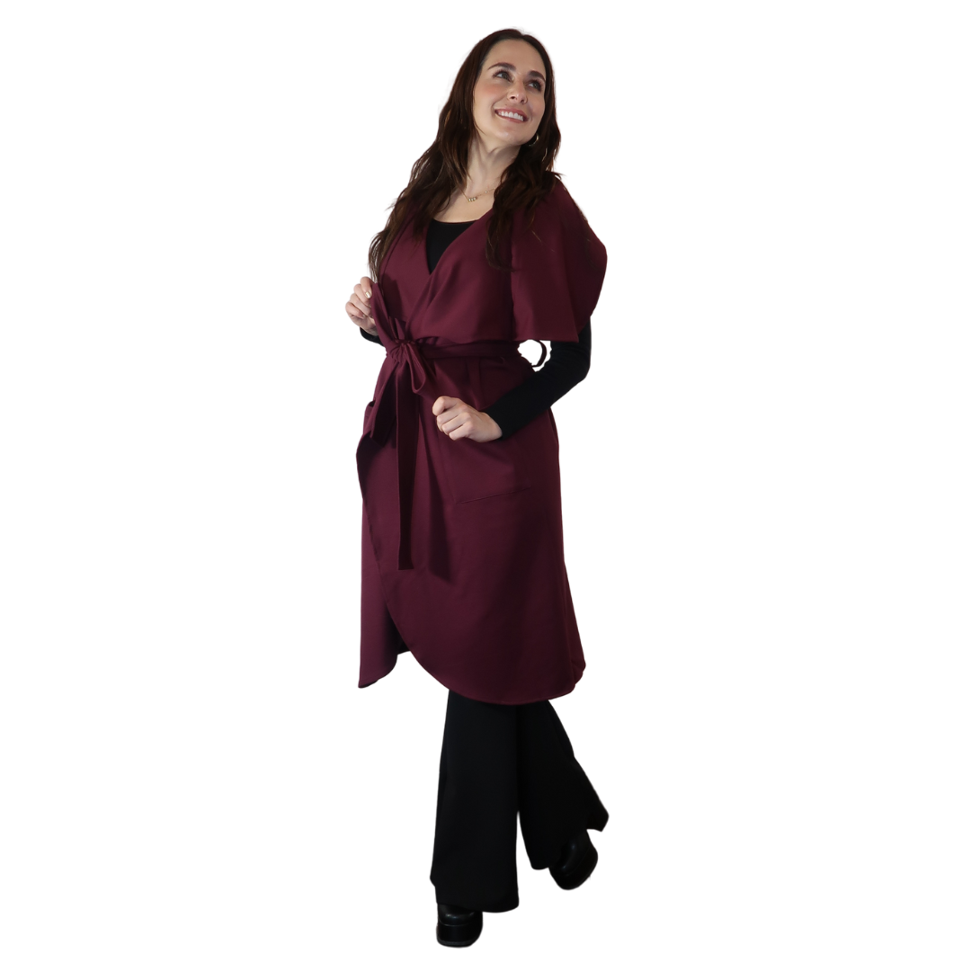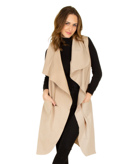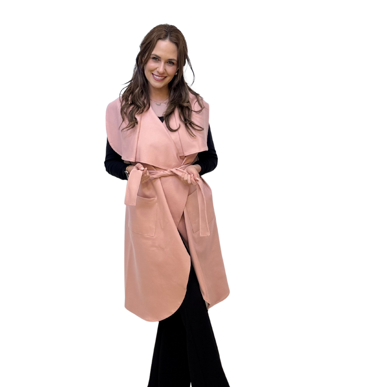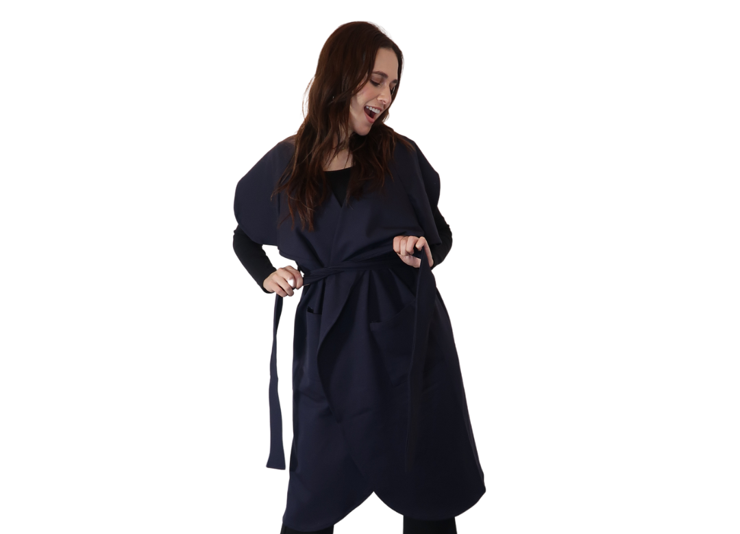 El Chaleco Luciana tiene un corte asimétrico, corto al frente y con caída progresiva en la parte trasera, creando un efecto estilizado. Su solapa curva puede usarse sobre los hombros para más cobertura o colgar para un look relajado. Talla única que se adapta a diferentes tipos de cuerpo, con bolsillos laterales funcionales y un cinturón removible para ajustar la cintura o llevarlo suelto. Ideal para oficina, días casuales o combinar con diferentes estilos, desde formales hasta informales. Hecho de tela liviana con buena caída, es versátil, cómodo y adecuado para cualquier temporada.